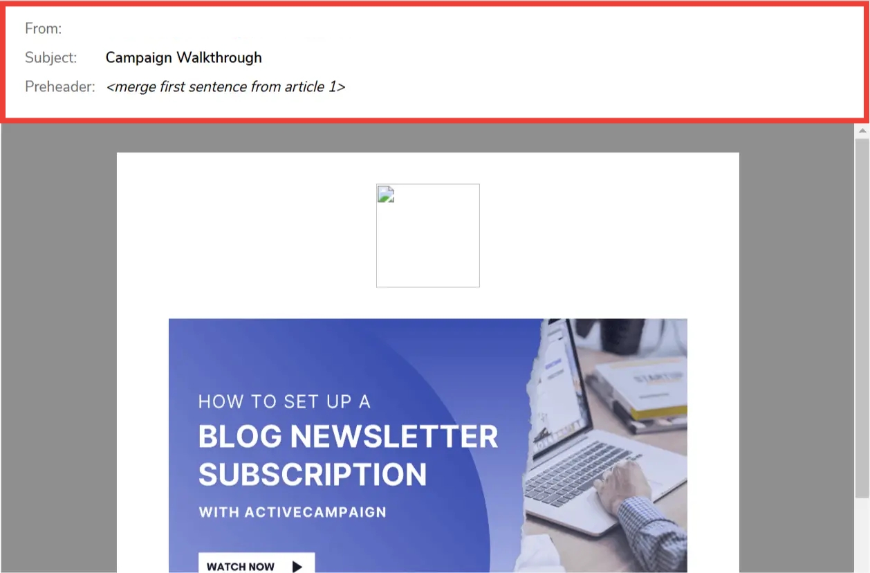 At this point an email preview has likely appeared showing your content. We will talk about email templates and how you can use a custom email design in a moment, but we need to finish setting a few basic email details first.