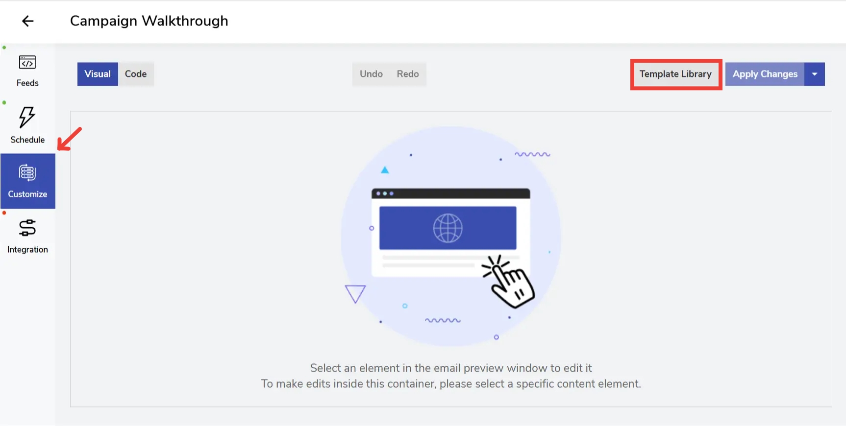 If you are using one of the built-in email templates you can choose from any number of customization options. Just click an element on the template to customize it!