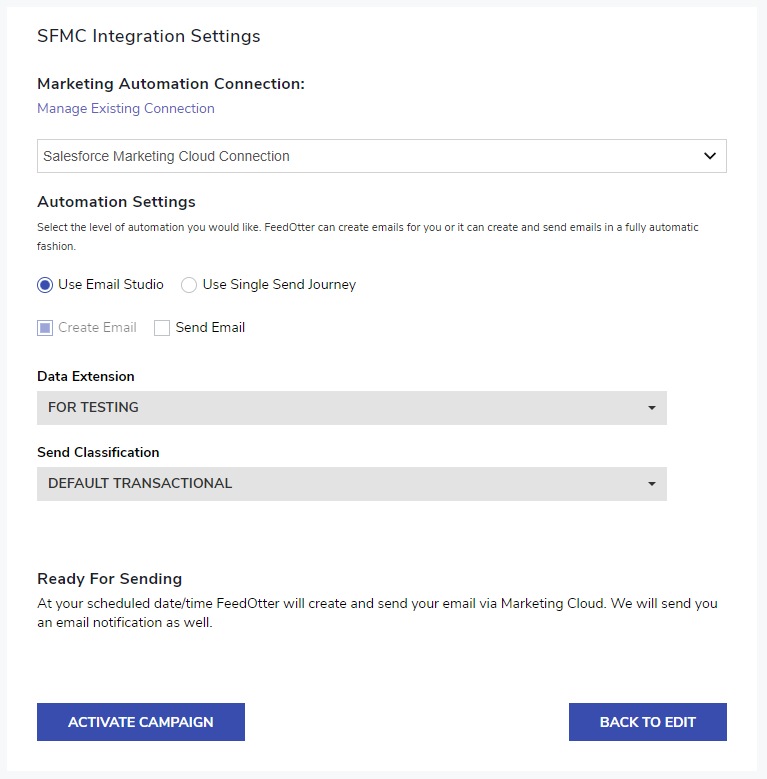 - Send Classification: Send classification settings will override FROM and REPLY-TO settings in the FeedOtter Application.